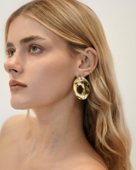 $38.00Details Add a touch of modern sophistication to your jewelry collection with the Ripple Hoop Earrings. These bold, sculptural earrings are designed with a smooth, reflective finish that creates a luminous effect, ensuring you stand out in any crowd. The organic, asymmetrical silhouette and hollowed center bring a contemporary edge,…